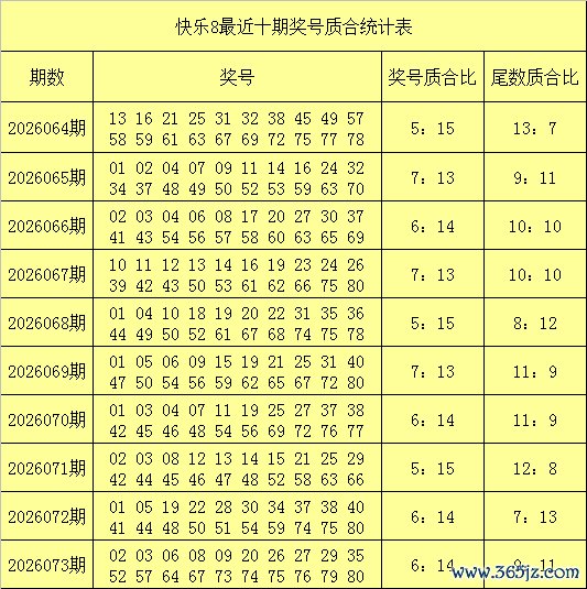 福彩快乐8第2026073期开出奖号:02 03 06 08 09 20 26 27 29 35 52 57 64 67 73 74 75 76 79 80,其中奖号质合比为6:14,奖号尾数质合比为9:11。